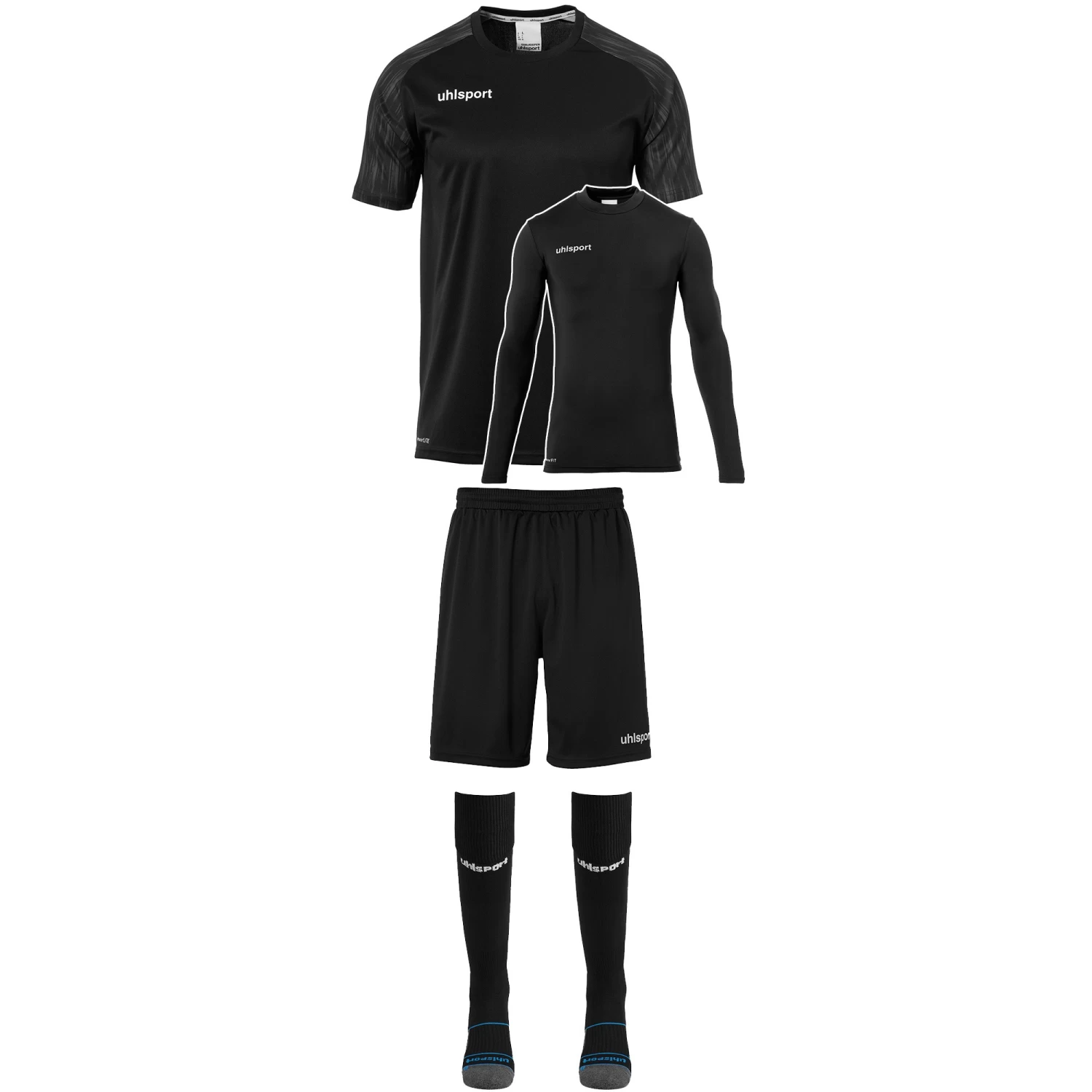 - Chaussettes : zone extensible au mollet et Ă la cheville pour un maintien optimal, pied en coton, griffe Uhlsport sur le devant